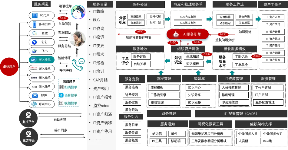 Service Request Management: Efficiently handle standardized user requests (such as permission applications and information inquiries) through the service catalog.