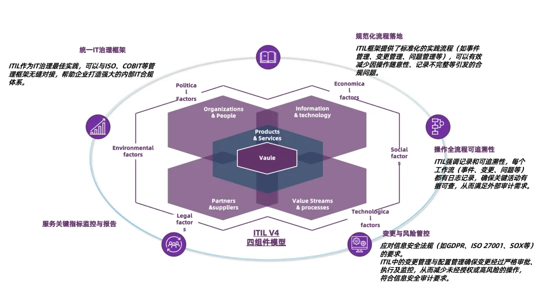 ITIL 4, the latest version of the ITIL system, incorporates modern concepts such as Agile, DevOps, and Lean Management, emphasizing value co-creation and digital transformation. It uses new concepts such as the Service Value System (SVS) and Service Value Chain (SVC) to help companies better adapt to the rapidly changing business environment.